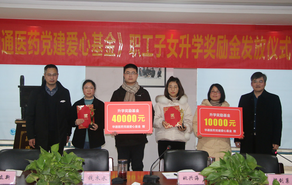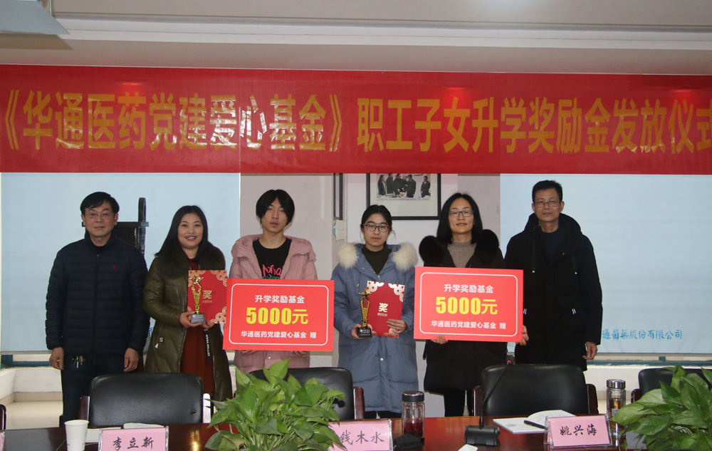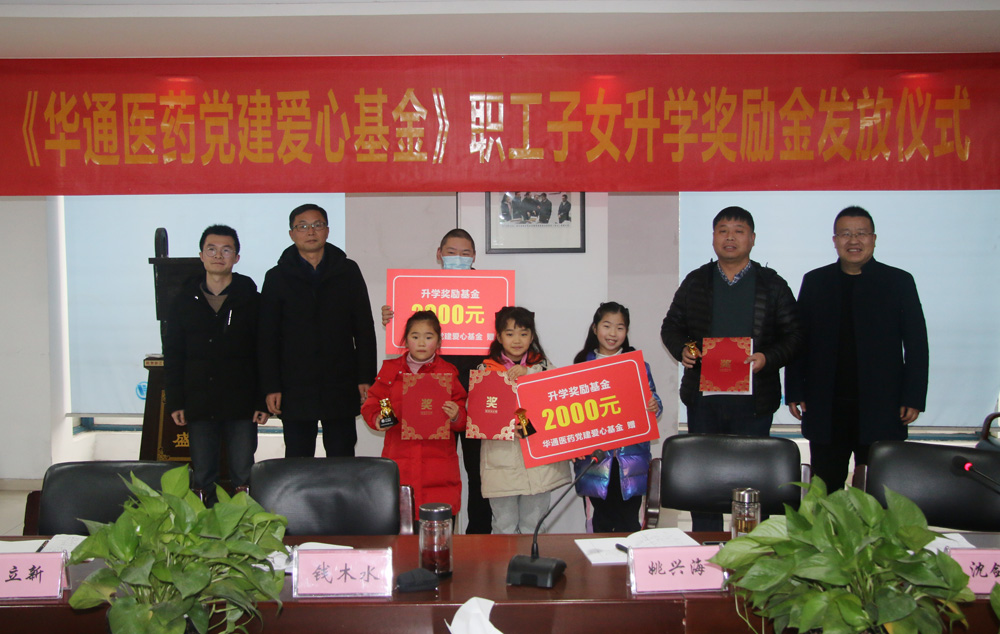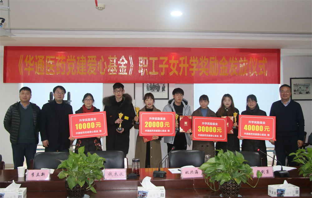 1月29日,公司舉行“華通醫(yī)藥黨建愛(ài)心基金”職工子女升學(xué)獎(jiǎng)勵(lì)金發(fā)放儀式。華通醫(yī)藥集團(tuán)經(jīng)營(yíng)班子成員及部分管理人員、獲獎(jiǎng)的職工子女代表共同參加。